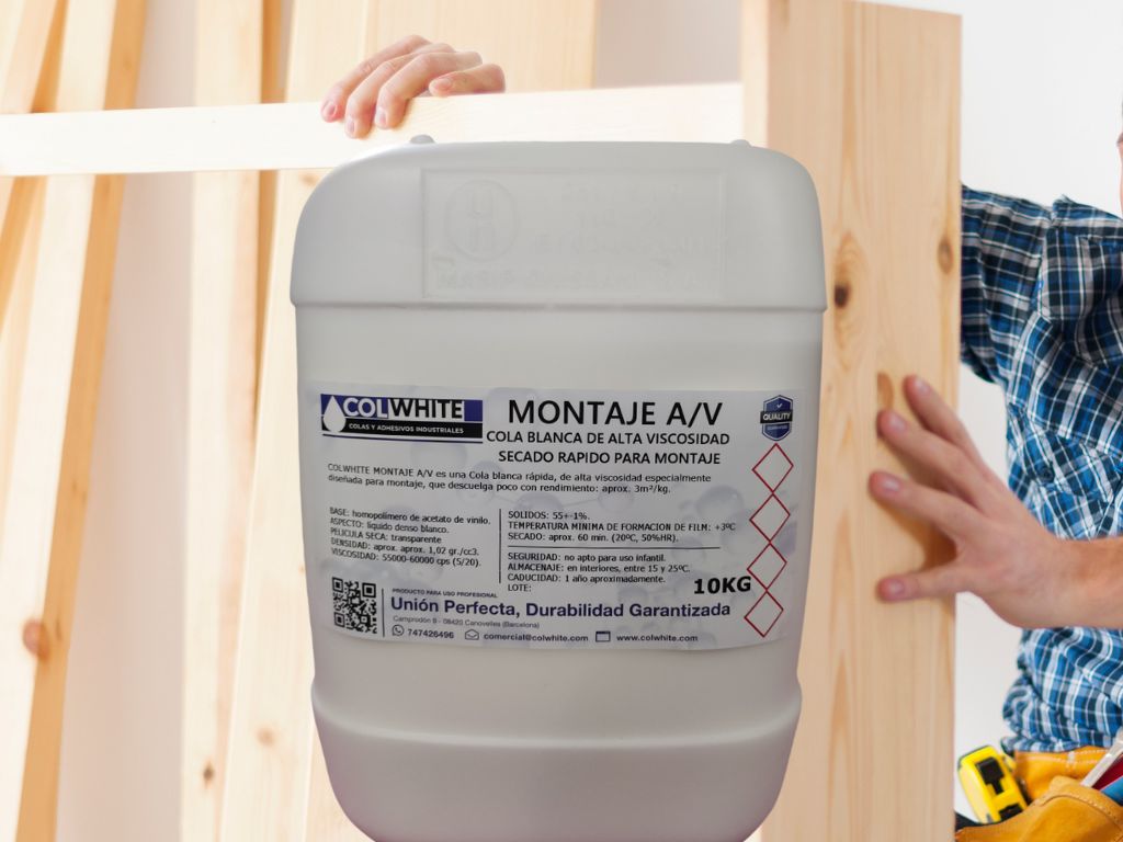 COLWHITE MONTAJE A/V es una cola blanca rápida especialmente diseñada para el montaje, de alta viscosidad