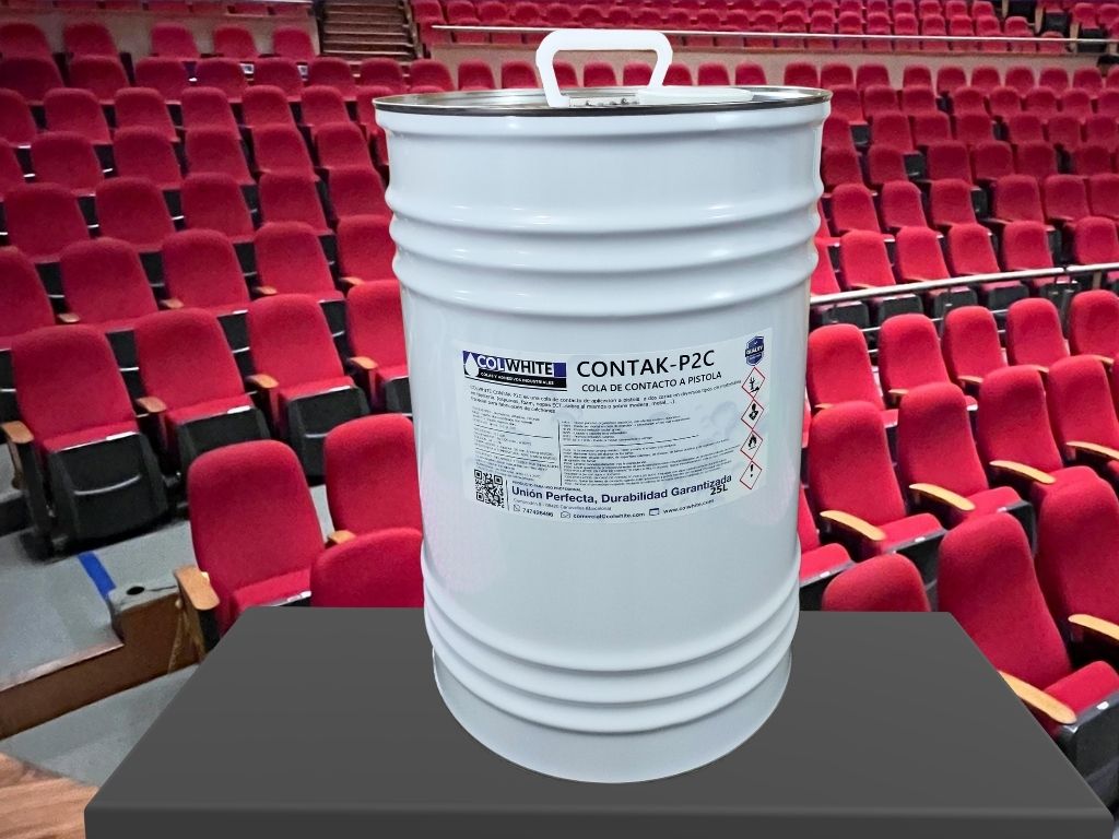 CONTAK-P2C es una cola de contacto de alto rendimiento de aplicación a pistola a dos caras en diversos tipos de materiales en tapicería. ( espumas, foam, napas ect… sobre sí mismos o sobre madera, metal ect..