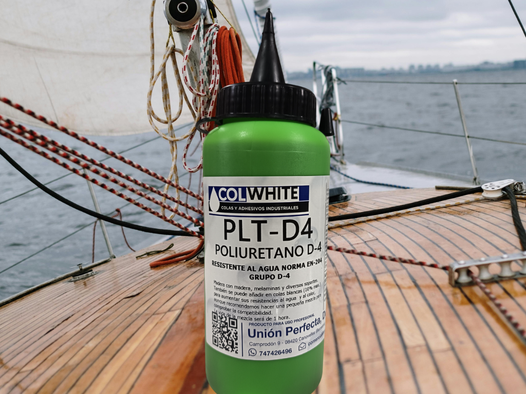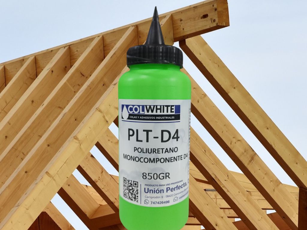 PLT-D4 es una cola de poliuretano monocomponente resistente al agua (DIN EN 204, grupo D-4).